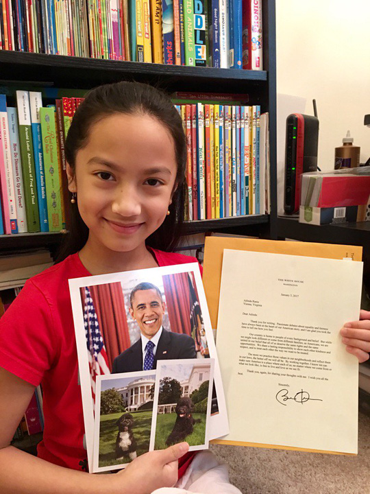 Adinda vui mừng khi nhận được thư và ảnh của Tổng thống Obama. Ảnh: TWITTER