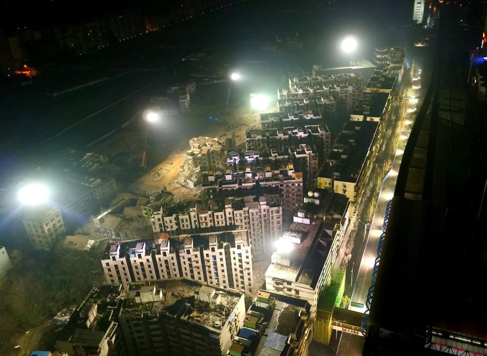 Các tòa nhà 7-12 tầng chỉ còn là đống tro bụi vào nửa đêm ngày 21.1, ở thành phố Hán Khẩu, tỉnh Hồ Bắc, Trung Quốc.