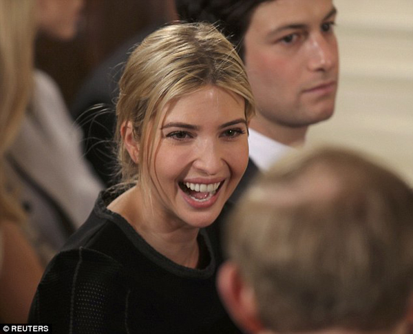 Ivanka Trump khiến những người xung quanh phải nhìn ngắm mê mải bởi nhan sắc rạng rỡ, xinh đẹp khi đến lễ nhận chức của chồng. Mặc dù ăn vận giản dị nhưng Ivanka Trump vẫn toát lên được thần thái của mình. Chồng của Ivanka Trump được bổ nhiệm làm cố vấn cấp cao trong buổi lễ.