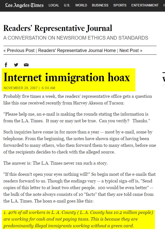 1. 40% các công nhân tại LA County (10.2 triệu người) đều làm việc lấy tiền mặt; và không đóng thuế. Ấy là bởi vì họ hầu hết là dân nhập cư bất hợp pháp, làm việc mà không có thẻ xanh. (Donald Trump nói rất đúng ở điểm này)