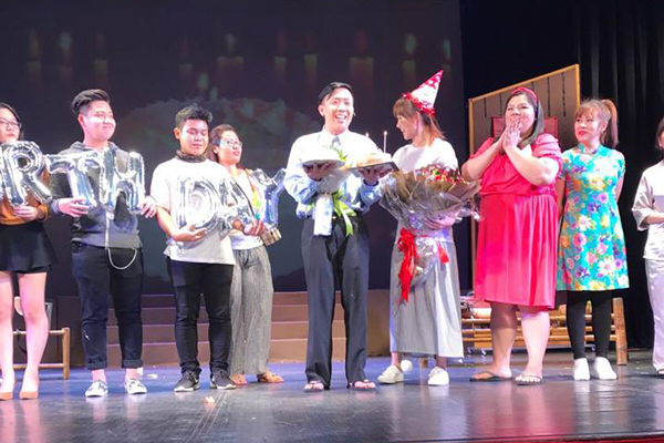 Hari Won chúc mừng sinh nhật chồng ngay trên sân khấu kịch