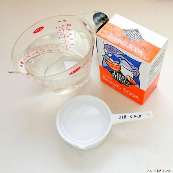 Trộn nửa cốc bột soda hoặc bột muối nở (baking soda) cùng với 3 muỗng canh nước để tạo ra một hỗn hợp nhão. Sau đó bạn dùng hỗn hợp trên lau lên các bộ phận của lò vi sóng, tránh các bộ phận làm nóng và để khoảng 12 tiếng hoặc qua đêm. Công đoạn cuối cùng là dùng vải mềm để lau lớp bột đã khô, kết quả thu được sẽ khiến bạn bất ngờ đấy!