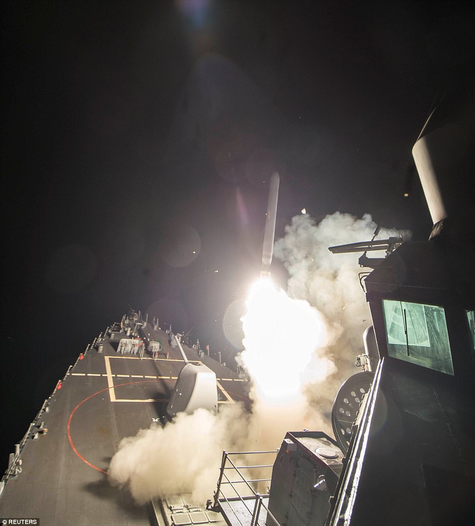 Tên lửa Tomahaw được phóng đi từ khu trục hạm Mỹ tấn công căn cứ quân đội Syria