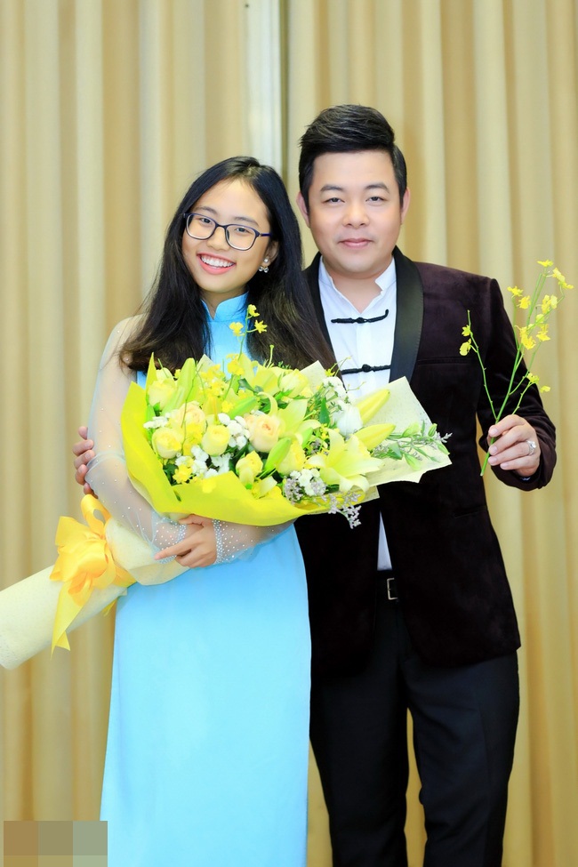 Cô bé thậm chí còn chỉnh sửa trang phục cho ba nuôi Quang Lê