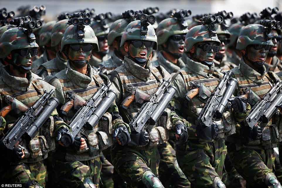 Gây ấn tượng mạnh nhất trong cuộc diễu binh hôm 15/4 là đội đặc nhiệm Triều Tiên. Kim Jong un rất tự hào và tin tưởng đội đặc nhiệm- nếu Kim Jong un ra lệnh, nó sẽ là lưỡi gươm đâm thấu tim kẻ thù. Họ cũng được huấn luyện và trang bị vũ khí không kém ǵ phương Tây.