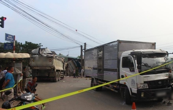 Vụ tai nạn rất nghiêm trọng xảy ra tại Bình Dương. Một chiếc xe ben đã húc vào đuôi xe tải rồi đâm sập một ngôi nhà. Đã có 5 người trong vụ việc bị thương nặng.