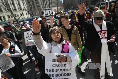 Người dân tham gia biểu tình phản đối lệnh cấm nhập cảnh mới của chính quyền Mỹ tại New York ngày 9/3.