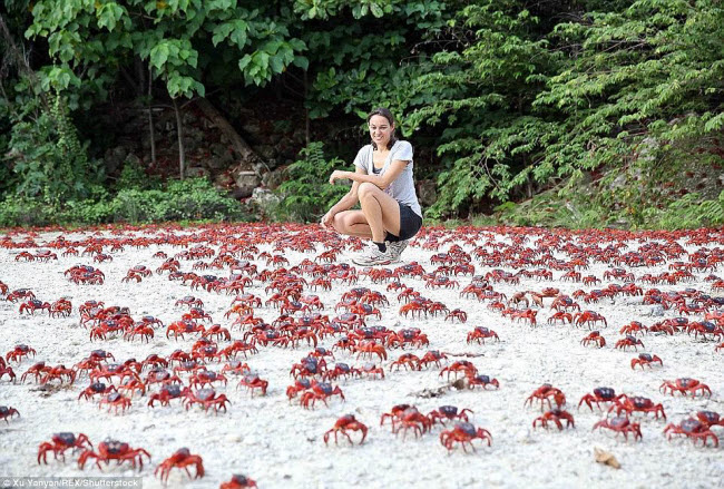 Đảo cua: Khoảng 43 triệu con cua đỏ sinh sống trên hòn đảo Giáng Sinh và chúng xuất hiện nhiều nhất vào mùa sinh sản. Trong quá trình cua đỏ di cư ra biển để sinh sản, chính quyền địa phương đã cấm các tuyến đường để đảm bảo an toàn, nhưng nhiều con trong số chúng bị nghiền chết trên đường ray tàu hỏa.