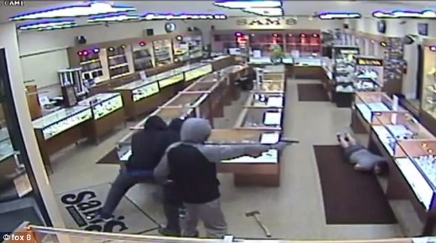 Bọn cướp đột nhập vào tiệm trang sức Sam's Jewelry vào khoảng 8 giờ tối hôm thứ năm.