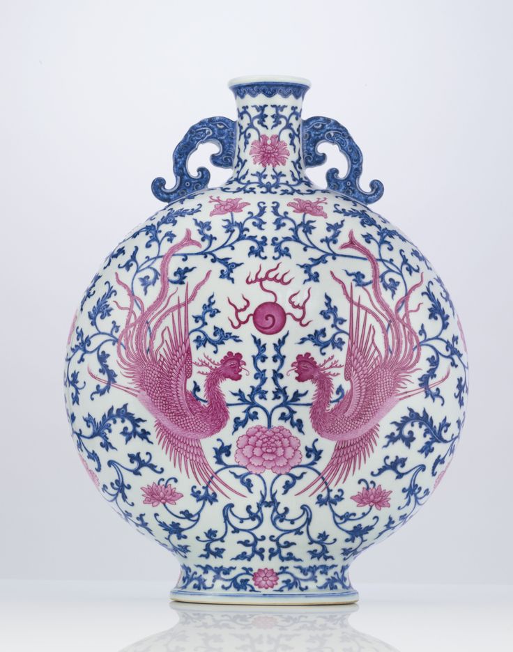Đây là chiếc bình gốm có giá trị cao nhất từ trước tới giờ. Các hoa văn tinh xảo, rõ nét và hài hòa của nó được ca ngợi là đỉnh cao. Dấu ấn triện của hoàng gia thể hiện nó ra đời vào đời vua Càn Long. Một nhà thám hiểm đã mua nó khi tới Trung Quốc, đem về Anh, sau đó bán lại. Ban đầu, nó chỉ có giá 1.000 USD vì bị nghi là bản copy, nhưng sau khi xác thực là hàng "chuẩn", giá trị lập tức vọt lên 1 triệu USD. Sau nhiều lần sang tay, chiếc bình hiện có giá 80,2 triệu USD.