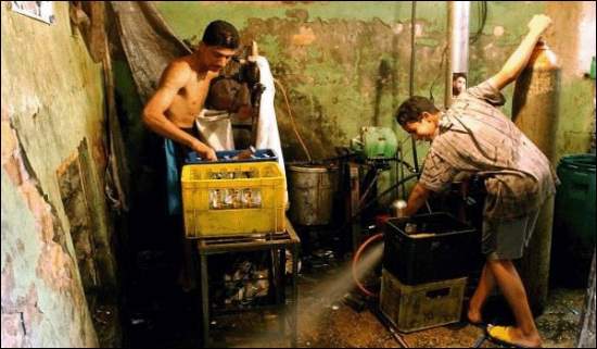 2. Trẻ em được thuê để đổ đồ uống còn thừa ra và làm sạch chai