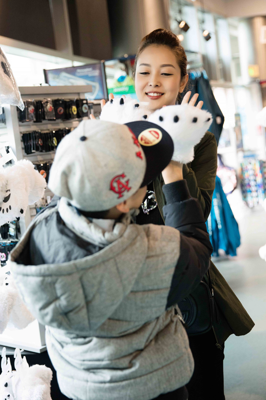 Trong suốt buổi đi chơi công viên, Hoa hậu luôn quan tâm và chăm sóc cho 'hoàng tử nhí'.