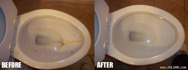 - Cách tẩy sạch bồn cầu bằn dấm trắng và bột soda làm bánh (bột nở): Đổ dấm trắng và một thìa canh baking soda vào bàn cầu, bồn tắm hay lavabo có vết ố vàng. Ngâm trong khoảng 30 phút, sau đó dùng bàn chải chà rửa bồn cầu hoặc lavabo sạch sẽ.