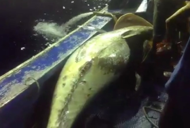 Sau khi đã cột, níu các dây chắc chắn, 5 thuyền viên trên tàu mỗi người một tay cùng nhau kéo cá lên, tuy nhiên việc đưa một con cá có trọng lượng gấp khoảng 6 người bình thường từ dưới đại dương lên bờ là điều không hề dễ dàng. “Con cá quật liên tục, có lúc chúng tôi tưởng chừng mình sắp bị kéo rơi xuống biển. Nhưng sau một hồi thì con cá bắt đầu yếu dần đi và chúng tôi hoàn thành kéo cá lên tàu sau gần 1 giờ”, cần thủ 20 tuổi nhớ lại chuyến ra khơi đầy kỷ niệm.