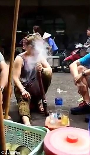 Sau vài giây, cô gái hoàn hồn và ngồi được dậy. Nét mặt của nữ du khách này vẫn chưa hết bàng hoàng sau khi “phê” thuốc lào. Tờ Daily Mail viết rằng thuốc lào là một loại cây trồng phổ biến trong rừng tại Việt Nam và có hàm lượng nicotine cao. Loại thuốc này thường dùng để chế thuốc trừ sâu (!?).