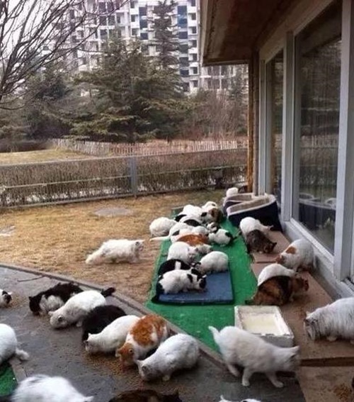 Được biết, trong số mèo khổng lồ lên đến 60 con này, có nhiều con là do đi lạc và được “Tiểu Long Nữ” mang về chăm sóc. Nhà cô hiện nay giống như một trạm cứu hộ mèo, nơi tập trung những chú mèo không ai nuôi nấng. Dù liên tục lên mạng đăng tìm chủ mới cho đàn mèo hoang, nhưng số lượng “tiểu hổ” tụ tập tại nhà Lưu Diệc Phi vẫn ngày một đông!