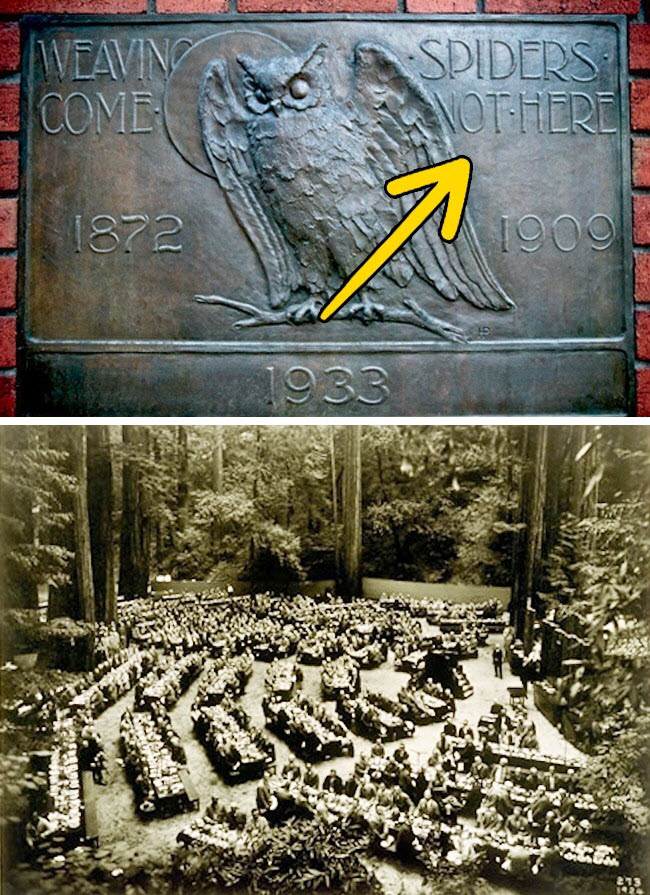 Đây là một câu lạc bộ bí ẩn nằm trong khu rừng cổ xưa ở bang California, Mỹ. Hằng năm từ 1899, những người có tầm ảnh hưởng nhất thế giới, bao gồm các tổng thống Mỹ, tập trung tại đây. Mục tiêu của câu lạc bộ này là không bàn công việc, nhưng dự án chế tạo bom nguyên tử Manhattan Project được cho là kư kết tại đây vào năm 1942.