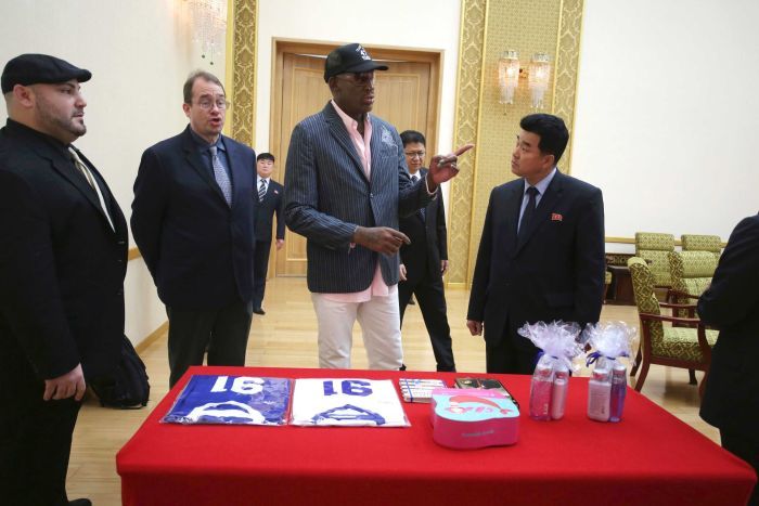 Bên cạnh cuốn sách, Rodman đem đến Triều Tiên hai chiếc áo có chữ ký của cựu ngôi sao bóng rổ Mỹ.