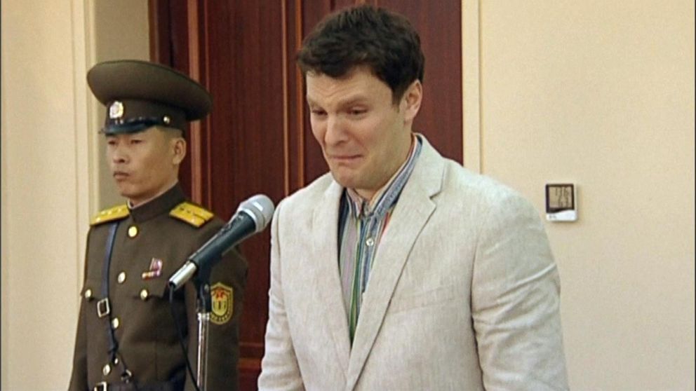 Warmbier đến Triều Tiên vào tháng 1.2016 trong một chuyến tham quan. Anh bị bắt giữ sau cáo buộc ăn cắp một khẩu hiệu chính trị trong khu vực cấm của Triều Tiên và bị kết án 15 năm lao động khổ sai.