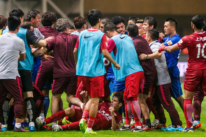 Các cầu thủ Guangzhou R&F đã lao vào quây lấy Oscar và định đánh hội đồng tiền vệ người Brazil. Kết thúc pha bóng, trọng tài đã phải rút 2 thẻ đỏ trực tiếp dành cho Li Tixiang (Guangzhou R&F) và Fu Huan (Shanghai SIPG).