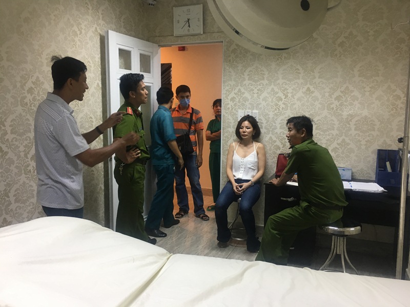 Bà Ngọc thẫn thờ tại bệnh viện Việt Mỹ khi báo cáo sự việc bị hành hung với công an phường Nguyễn Cư Trinh
