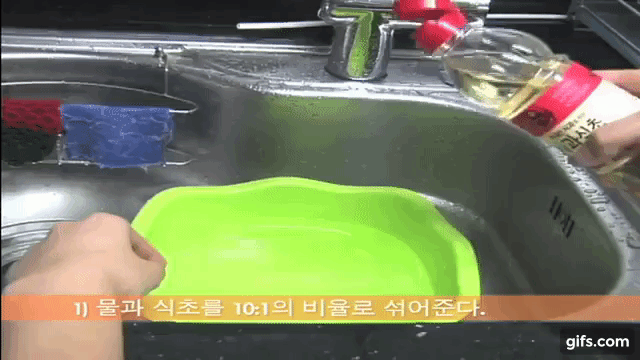 - Bạn pha giấm và nước theo tỉ lệ 1:10, tức là 1 phần giấm 10 phần nước nhé.
