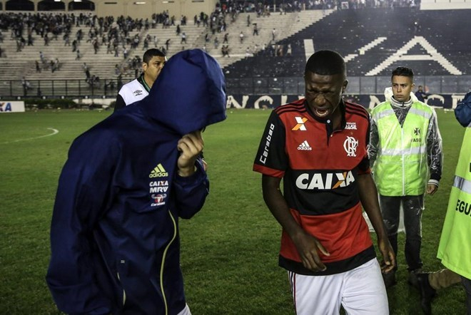 Vinicius Jnr., tài năng của bóng đá Brazil bị cay mắt vì hơi cay. (Nguồn: EPA)