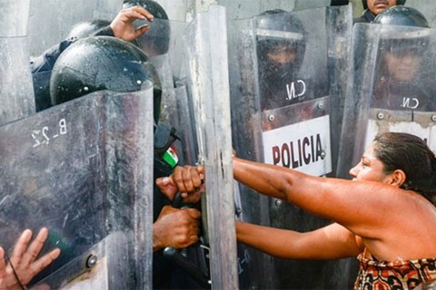 Gia đình các nạn nhân trong vụ bạo loạn tại nhà tù Las Cruces, bang Guerrero đụng độ với cảnh sát Mexico