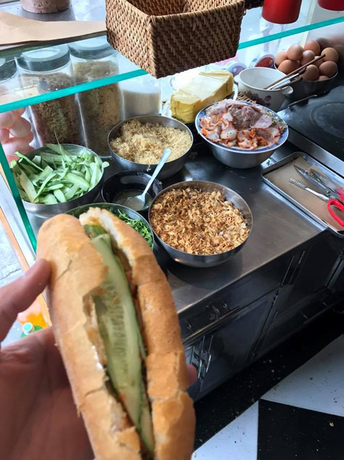 Nằm trên đường Trần Cao Vân, tiệm được trang TripAdvisor gọi là “The Banh my Queen” (Nữ hoàng bánh ḿ). Tuy nhiên, so với bánh ḿ Phượng, tiệm này có vị trí khó t́m hơn và lượng khách cũng không đông bằng. Tùy thời điểm khách mới phải xếp hàng đợi mua. Bánh ḿ ở đây cũng rất phong phú về nhân, giá khoảng 20.000 đồng một chiếc. Ảnh: IG hakatadoll.