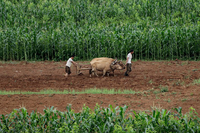 Nông dân làm việc trên cánh đồng ở Sangwon, Triều Tiên (Ảnh: AP)