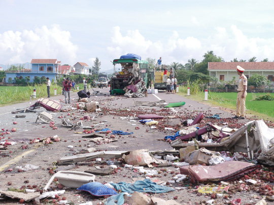 Thông tin ban đầu, khoảng 21 giờ 30 phút tối 16-8, tại đường tránh Quốc lộ 1A đoạn thuộc thôn An Lạc Đông 2, thị trấn Phù Mỹ, huyện Phù Mỹ đã xảy ra va chạm giữa xe đầu kéo BKS 35C- 035.50 kéo rơ moóc 35R- 00176 chở theo 2 máy ủi, do Nguyễn Văn Hương (SN 1989, ngụ tỉnh Ninh Bình) điều khiển theo hướng Bắc - Nam và xe khách 45 chỗ BKS 75B- 001.01, do Nguyễn Long Hồ (SN 1973, ngụ tỉnh Thừa Thiên Huế) điều khiển theo hướng ngược chiều. Vụ tai nạn giao thông đặc biệt nghiêm trọng này đã khiến 5 người trên xe khách tử vong tại chỗ và 2 người bị thương nặng. Tại hiện trường, chiếc xe khách bị hư hỏng nặng phần bên hông và đuôi xe.
