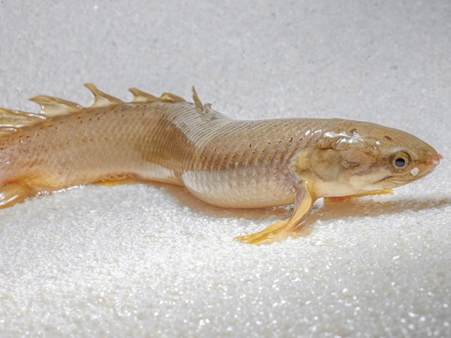 Loài cá kỳ lạ này cũng có vây đuôi giống như những con cá thông thường nhưng đặc biệt ở chỗ, những chiếc vây được sắp xếp để chúng có thể tự kéo ḿnh về phía trước như cơ thể với cánh tay.