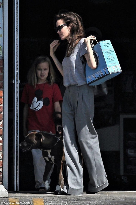 Sau thông tin cặp sao nổi tiếng Angelina Jolie- Brad Pitt "gương vỡ lại lành". Angelina Jolie với những hình ảnh đầu tiên được chụp trên khu phố Los Los Feliz. Khán giả hâm mộ khá bất ngờ với hình ảnh mới của cô.