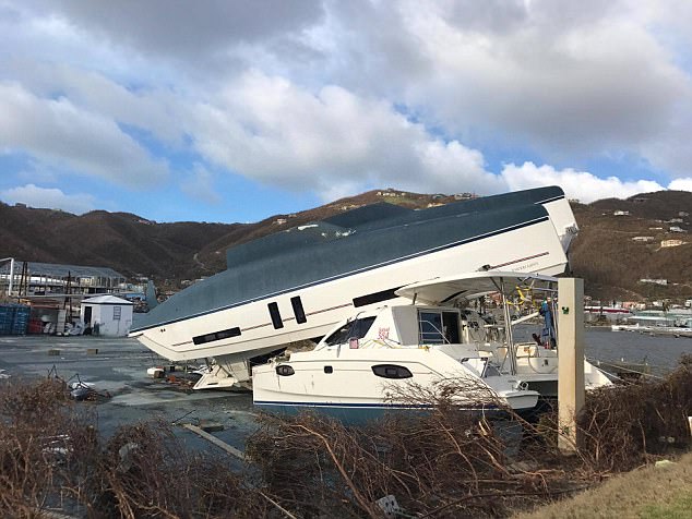 Một chiếc tàu bị gió bão thổi bay trên đảo Virgin.