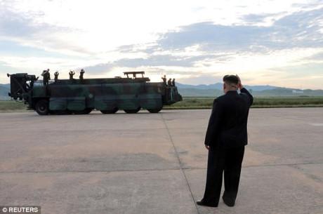 Nhật Bản là nước lo lắng nhất và đă phải cảnh báo khẩn cấp cho người dân khi tên lửa bay qua nhiều vùng của nước này trước khi rơi xuống biển. Trong các bức ảnh được KCNA công bố, lănh đạo Triều Tiên đang tươi cười nh́n tên lửa được phóng lên cùng với các quan chức xung quanh.