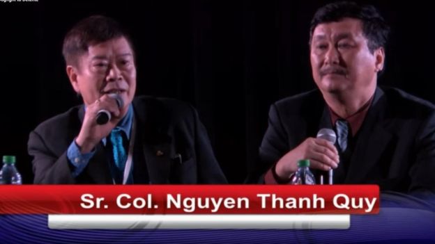 Đại tá Nguyễn Thanh Quư (trái) tại buổi giao lưu - h́nh ảnh chụp từ video tường thuật trực tiếp của Tổ chức Bảo tàng USS Midway