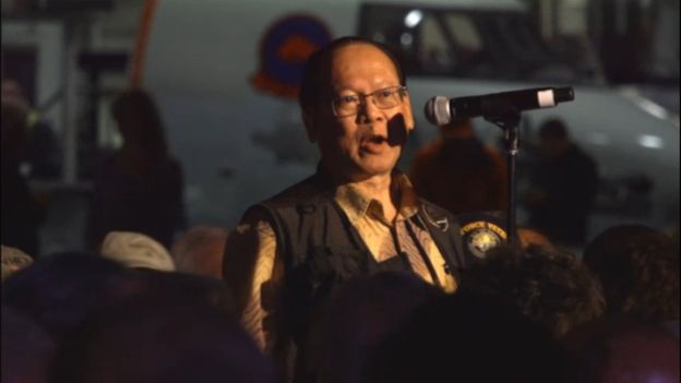 Trung tướng Nguyễn Đức Soát dẫn đầu đoàn lính phi công Việt Nam tại buổi giao lưu - h́nh ảnh chụp từ video tường thuật trực tiếp của Tổ chức Bảo tàng USS Midway