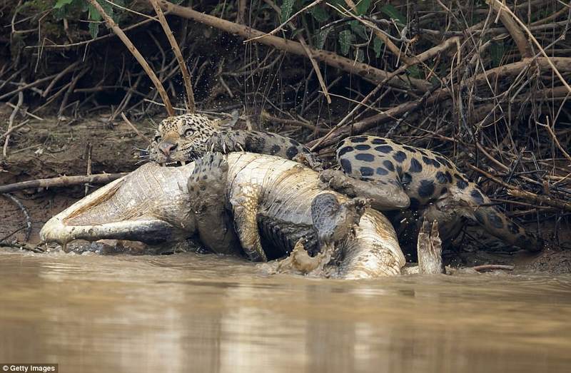 Một con cá sấu khủng tưởng như vô địch thiên hạ đã bị một con báo xuống sông cắn chết rồi lôi lên bờ. Cảnh tượng độc đáo này đã được một nhiếp ảnh gia chụp được hôm 26/9. Tác giả bộ ảnh nói rằng anh chưa bao giờ nhìn thấy con cá sấu nào lớn tới vậy ở khu vực sông Brazil.
