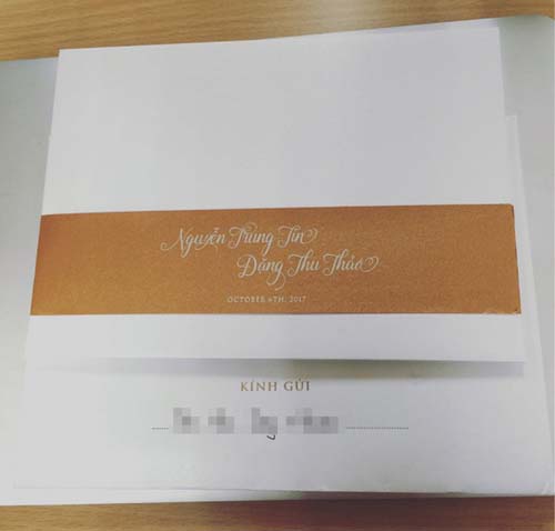 Tấm thiệp cưới của Đặng Thu Thảo và Trung Tín cũng được chia sẻ rầm rộ trên mạng xã hội mới đây. Có thể thấy, tấm thiệp của Thu Thảo lựa chọn khá đơn giản, không cầu kỳ, xa hoa giống như của các sao Việt khác. Bên ngoài tấm thiệp là dòng chữ Nguyễn Trung Tín - Đặng Thu Thảo và ngày diễn ra hôn lễ.