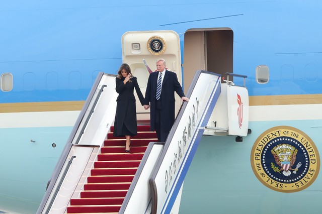 Tổng thống Mỹ Donald Trump và Đệ nhất phu nhân Melania hôm nay 8/11 đã đáp chuyên cơ xuống Bắc Kinh, bắt đầu chuyến thăm chính thức Trung Quốc - một phần trong chuyến công du châu Á đầu tiên của ông.