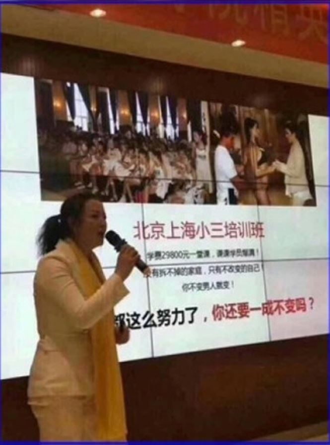 Tại một số thành phố lớn ở Trung Quốc xuất hiện các “Lớp bồi dưỡng huấn luyện “Tiểu Tam” (cách gọi những “người thứ ba” chuyên t́m cách chen vào những cuộc hôn nhân, phá vỡ gia đ́nh người khác).