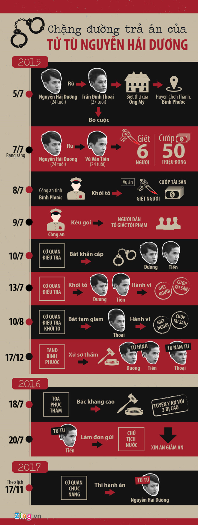 Ngày 17/11, Hội đồng thi hành án tử h́nh tỉnh B́nh Phước sẽ tiêm thuốc độc thi hành án tử h́nh đối với Nguyễn Hải Dương- tử tù gây ra vụ thảm sát 6 người trong gia đ́nh ông Lê Văn Mỹ hơn hai năm trước. Trước khi tử h́nh, Nguyễn Hải Dương có nguyện vọng được hiến xác cho y học.