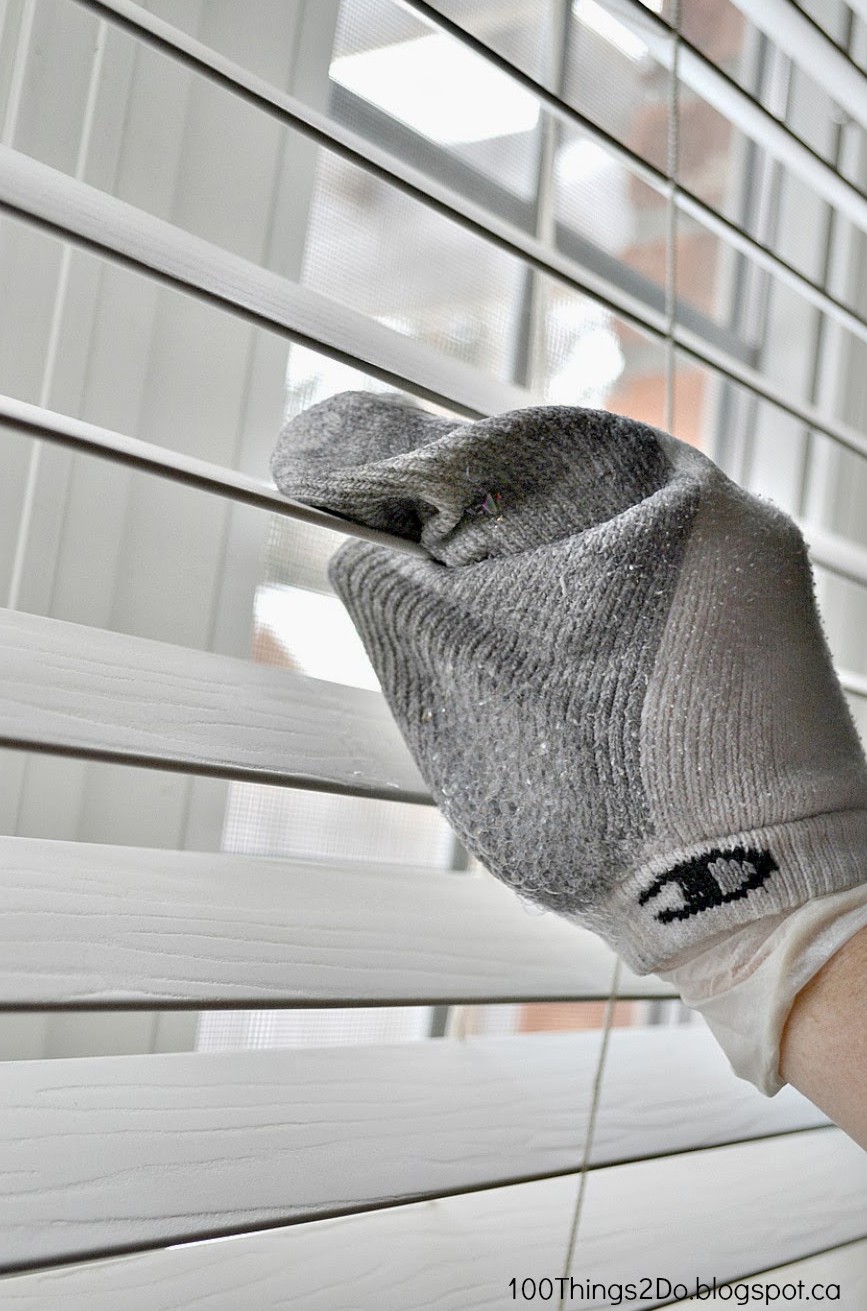 Để làm sạch bụi từ mành sáo một cách nhanh nhất, bạn có thể dùng một chiếc tất cũ. Giặt sạch nó, luồn tay vào bên trong và lau từng thanh mành một.
