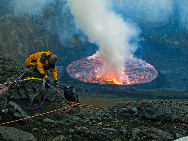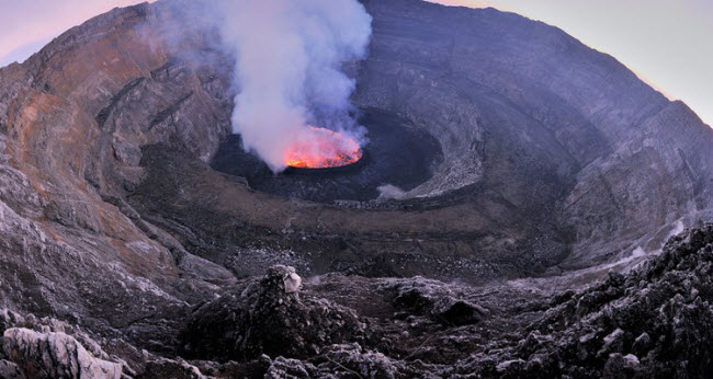 Nằm trong vườn quốc gia Virunga ở Congo, núi lửa Nyiragongo nổi tiếng với hồ dung nham lớn nhất thế giới.