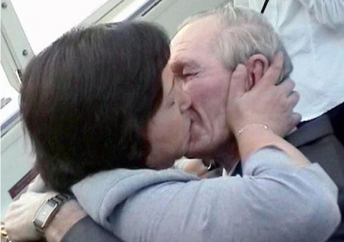 Nụ hôn đoàn tụ của Jenkins với vợ ở sân bay jakarta, Indonesia vào tháng 6/2004