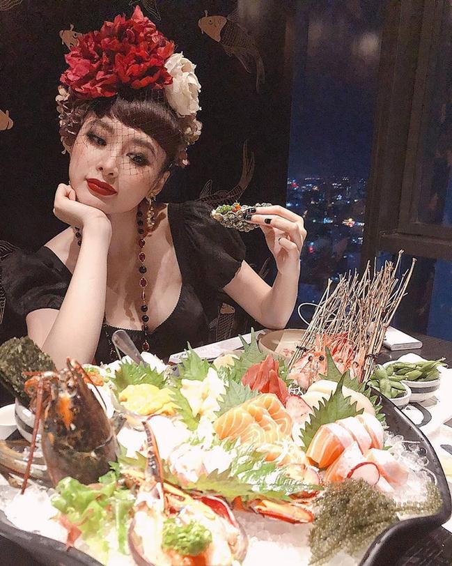 Người đẹp cứ ra khỏi nhà là không chịu "xấu". Cô trang điểm cầu kỳ và ăn mặc hết sức gợi cảm dù chỉ đi ăn ở ở vỉa hè hay nhà hàng sang trọng. Khi Angela Phương Trinh xuất hiện, mọi ánh mắt đều rất "thèm thuồng"