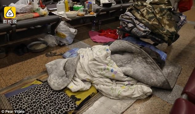 Ông Wei "tận hưởng" cuộc sống của một người vô gia cư tại Sân bay Quốc tế Bắc Kinh.