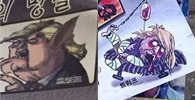 H́nh ảnh Tổng thống Trump bị châm biếm trong các tờ rơi được phát hiện ở Hàn Quốc (Ảnh: Korea Times)