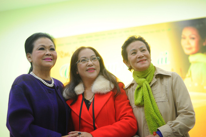 Sinh viên ĐH Đà Lạt chụp ảnh lưu niệm với danh ca Khánh Ly - Ảnh: LÂM THIÊN