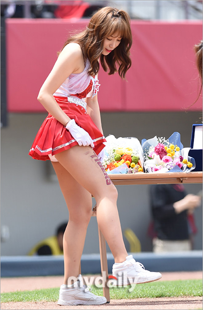 Cheerleader – hoạt náo viên của sân bóng chày xứ Hàn với hình xăm kéo dài trên mảng đùi nhận được lời khen ngợi từ fan. Tuy nhiên, nhiều khả năng đây chỉ là cách xăm giả trong một vài ngày.